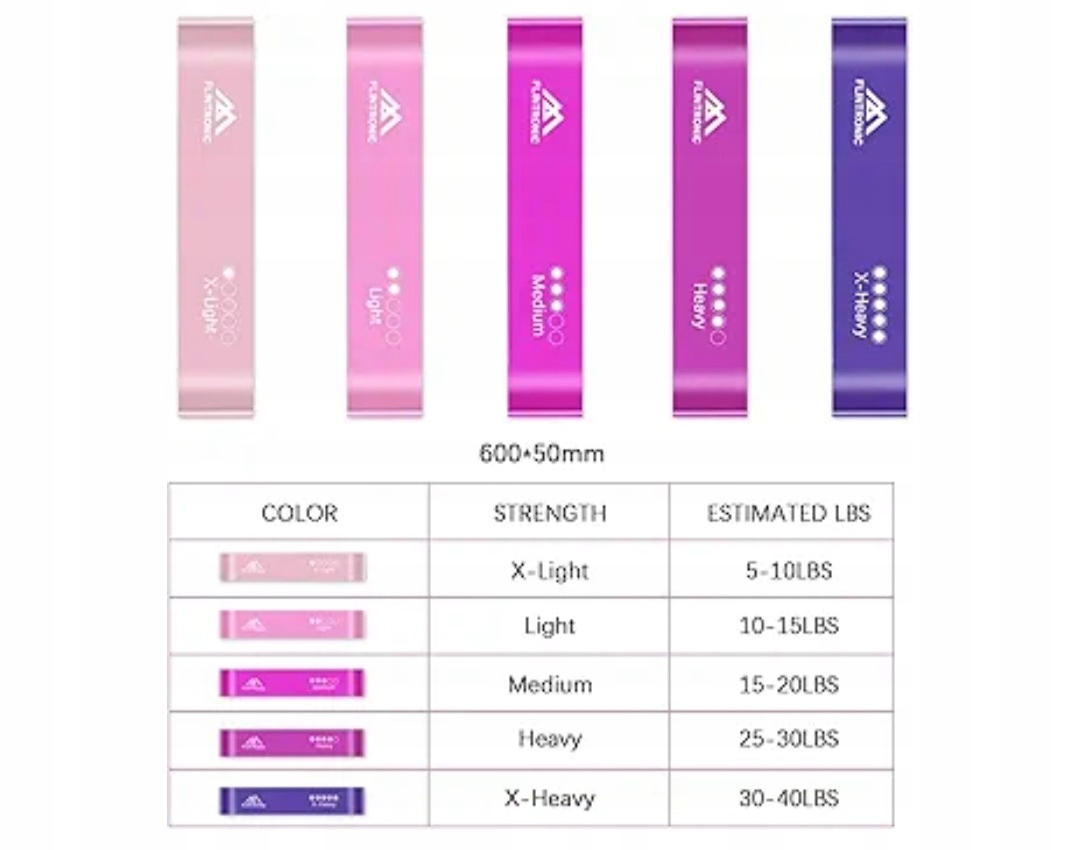 5 рівнів опору - набір стрічок опору має п'ять рівнів опору, від 15 кг до 20 кг. Кожен колір являє собою рівень опору, тому ви можете швидко розпізнати правильний рівень для вас. Незалежно від того, ви професіонал чи початківець, фітнес -стрічки задовольнять ваші потреби