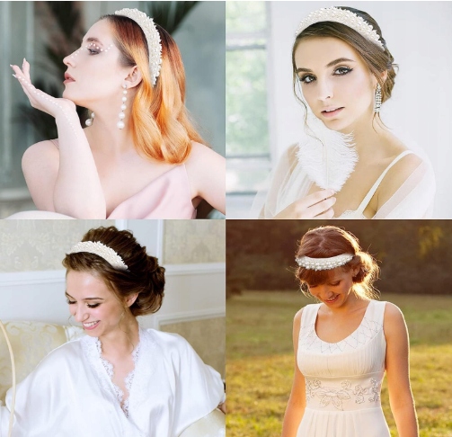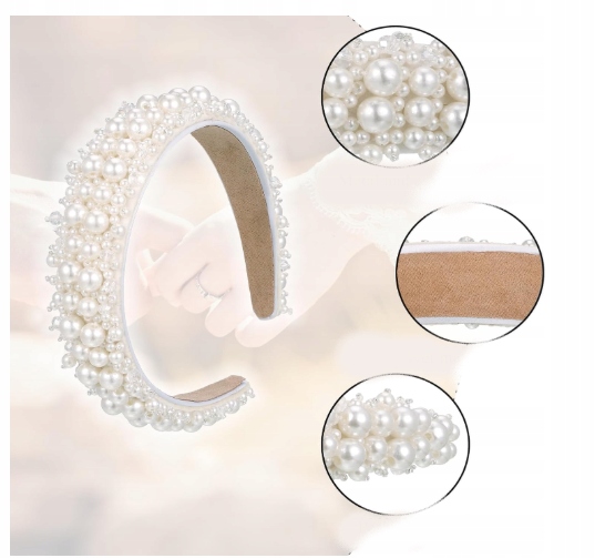 - Весільна пов'язка має гладку поверхню і не має гострих кінців. Перламутрова пов'язка надійно сидить на голові, не псує волосся і не зісковзує легко. Нижня частина пов’язки на голову виконана з еластичного поліестеру, що робить її зручною протягом усього дня.