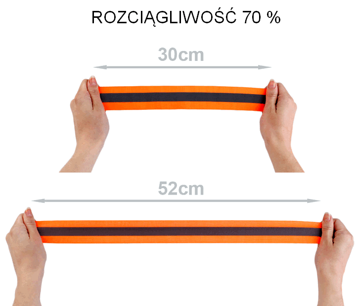 Світло -помаранчева еластична з світловідбиваючим середнім поясом дуже практична. Завдяки світловідбиваючому поясу ваш одяг буде більш помітним. Він гнучкий (розтягується), після розтягування він повертається до свого первісного стану.