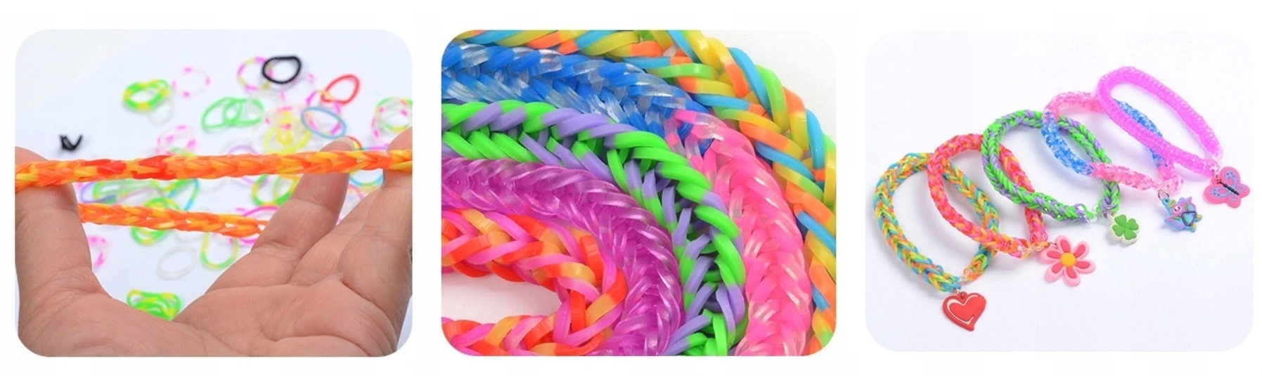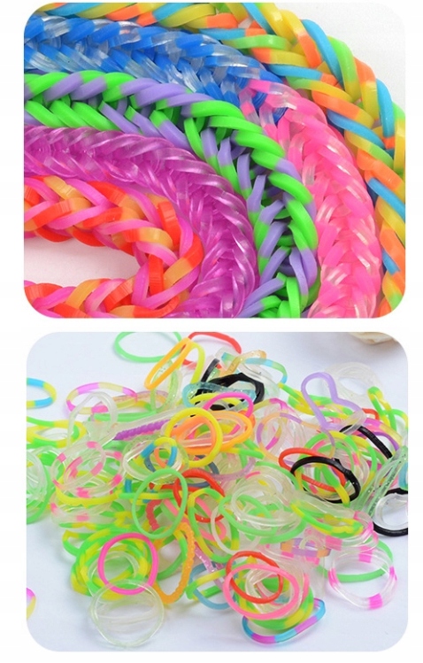 Креативний набір складається з приблизно 1500 гумок і підвісок для виготовлення прикрас як для дівчаток, так і для хлопчиків. Різнокольорові браслети можна вільно компонувати за мотивами та кольорами на ваш вибір.