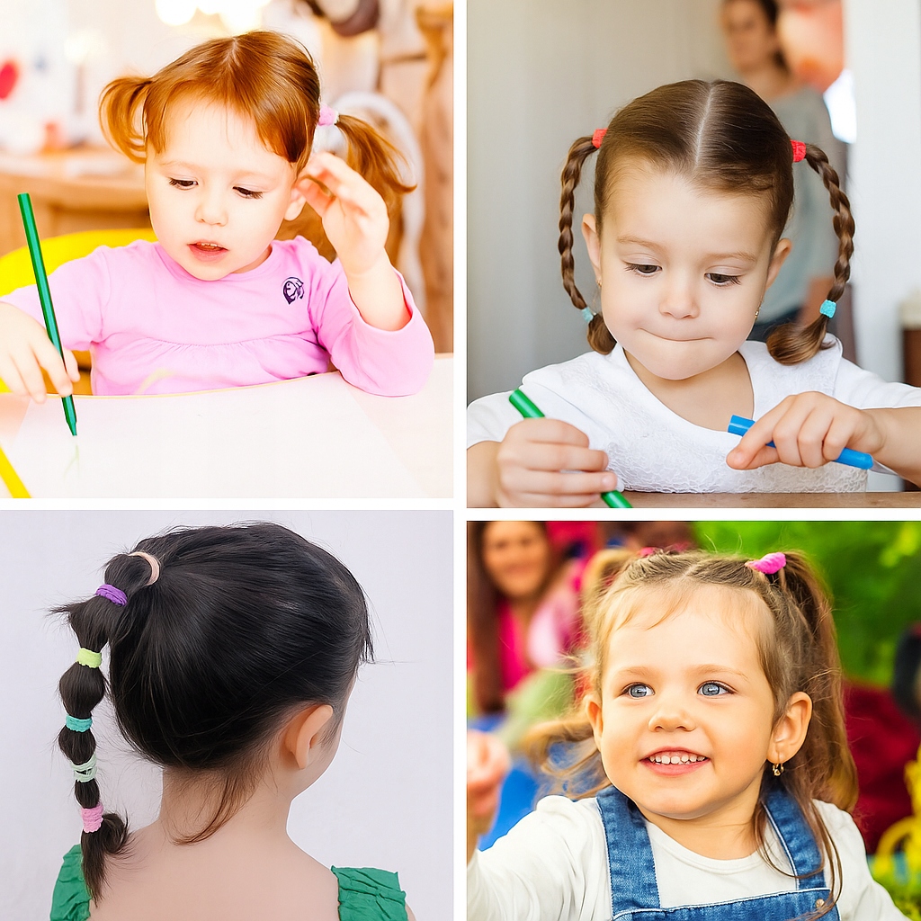 ✅ Для дітей - барвисті зачіски для дитячого садка, школи та ігор.