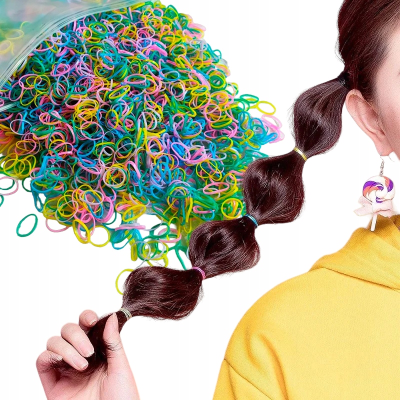Гумки – це фантастичний інструмент, який значно полегшує догляд за волоссям і його укладання. Ці барвисті еластичні гумки є безцінними як основний інструмент для зав’язування волосся та дозволяють створювати різні зачіски, такі як коси, хвостики або поєднання заплетеного волосся з натуральним волоссям. Вони не тільки практичні, але йдружні до волосся та шкіри голови.
