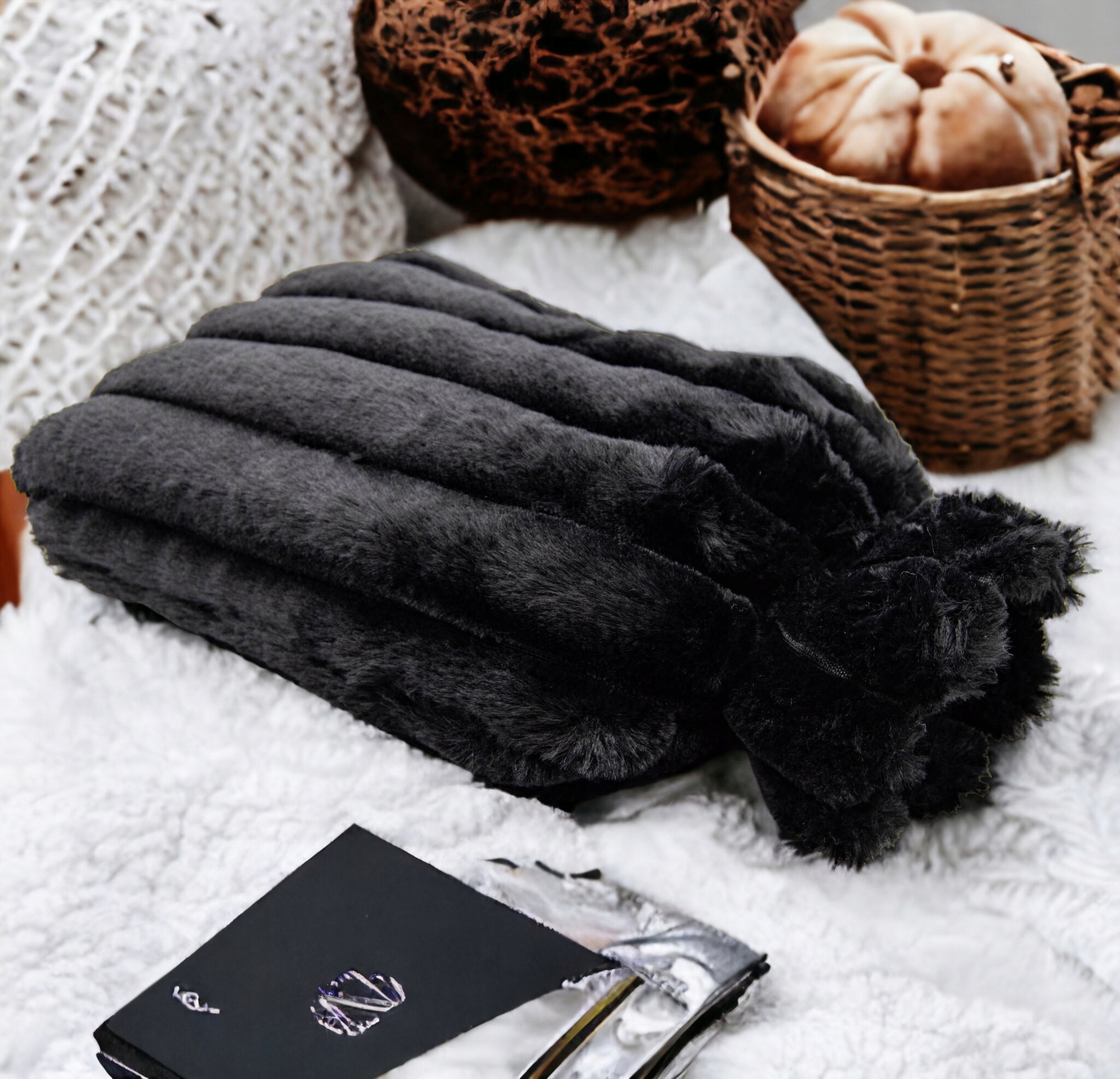 - грілку в біло-сірій обкладинці з плюшевим візерунком.