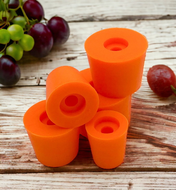 Пробка для деміжана виготовлена з високоякісної гуми, що робить її стійкою до вологи та запобігає потраплянню небажаних комах у вино. Використання гуми значно подовжує термін служби пробки та працюватиме набагато краще, ніж коркова пробка, яка може бути пошкоджена під час використання. Він оснащений отвором, в який слід встановити бродильну трубу (скляну або пластикову). Іідеально підходить для закривання повітряних куль і диму.
