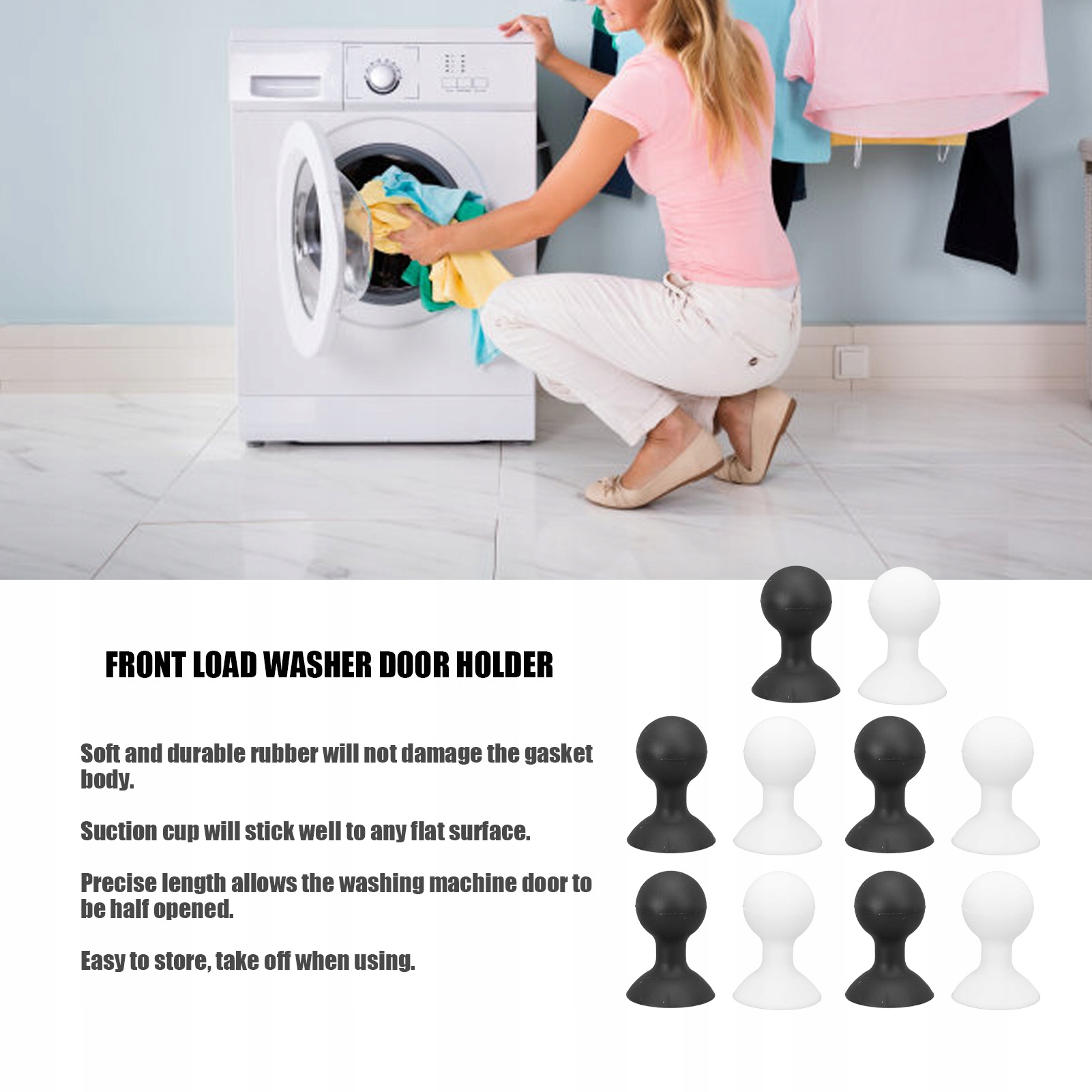 Функція:1. Сильна присоска: присоска має надсильну потужність, після встановлення дверна ручка пральної машини більше не рухається.