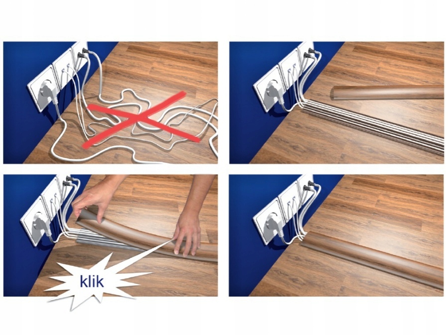 Він також ідеально підходить як кришка кабелю. Завдяки цьому кабелі, що лежать на підлозі, і їх можна пошкодити ногою або наїхати на них, наприклад, офісним кріслом, більше не будуть вашою турботою.