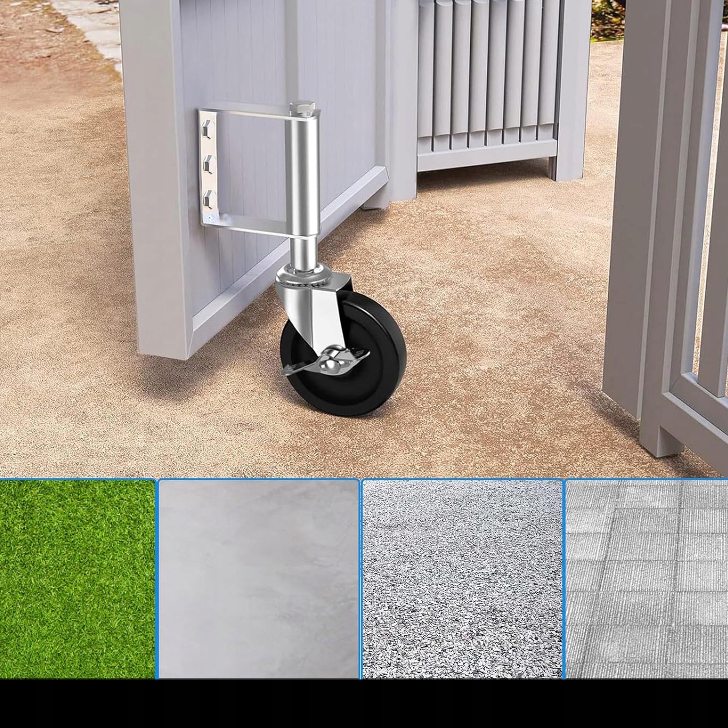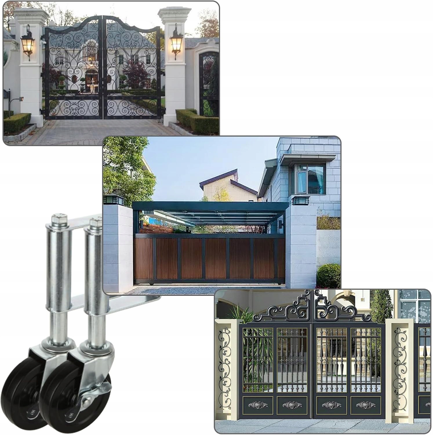 ✨ строди: Метт -чорна сталева пластина, покрита покриттям, і подвійна кулькова підшипник забезпечують міцну опору навантаження, максимальне навантаження 100 кг для кожного колеса воріт, полегшують отвір або закриття великих важких воріт. 360 °: колесо з гумовим опором для старіння 10 см з верхньою обертною пластиною 360 °, чудовою механічною міцністю та вантажопідйомністю, легко перетворюється в будь -які напрямки, дозволяє приділяти невелику міцність для безпечного переміщення ворота. 4