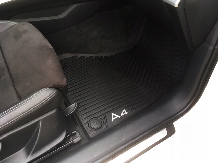 Всепогодні килимки оптимально адаптовані до формують підлогу вашого A4 та переробляються. З титаново-сірим написом A4 на передніх килимках. Завдяки нековзкій текстурі знизу та кріпленню до передбачених для цього точок на підлозі вони з’єднуються з підлогою автомобіля.