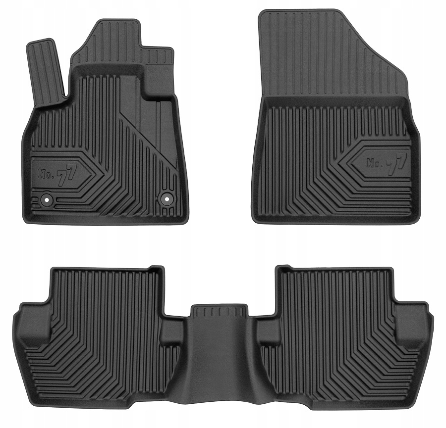 • Набір чорних килимків, виготовлених на замовленняідеально підібраних до конкретної моделі автомобіля. Вони виготовлені з пластикового еластомеру (TPE), використаний матеріал і методи виробництва означають, що вони не мають характерного неприємного запаху.