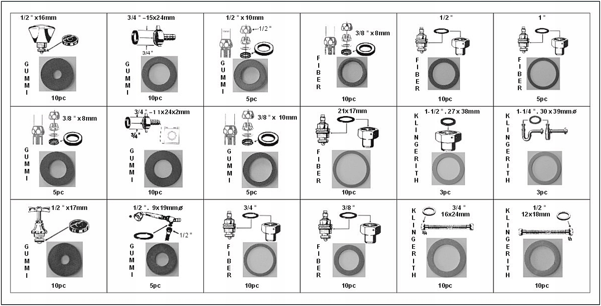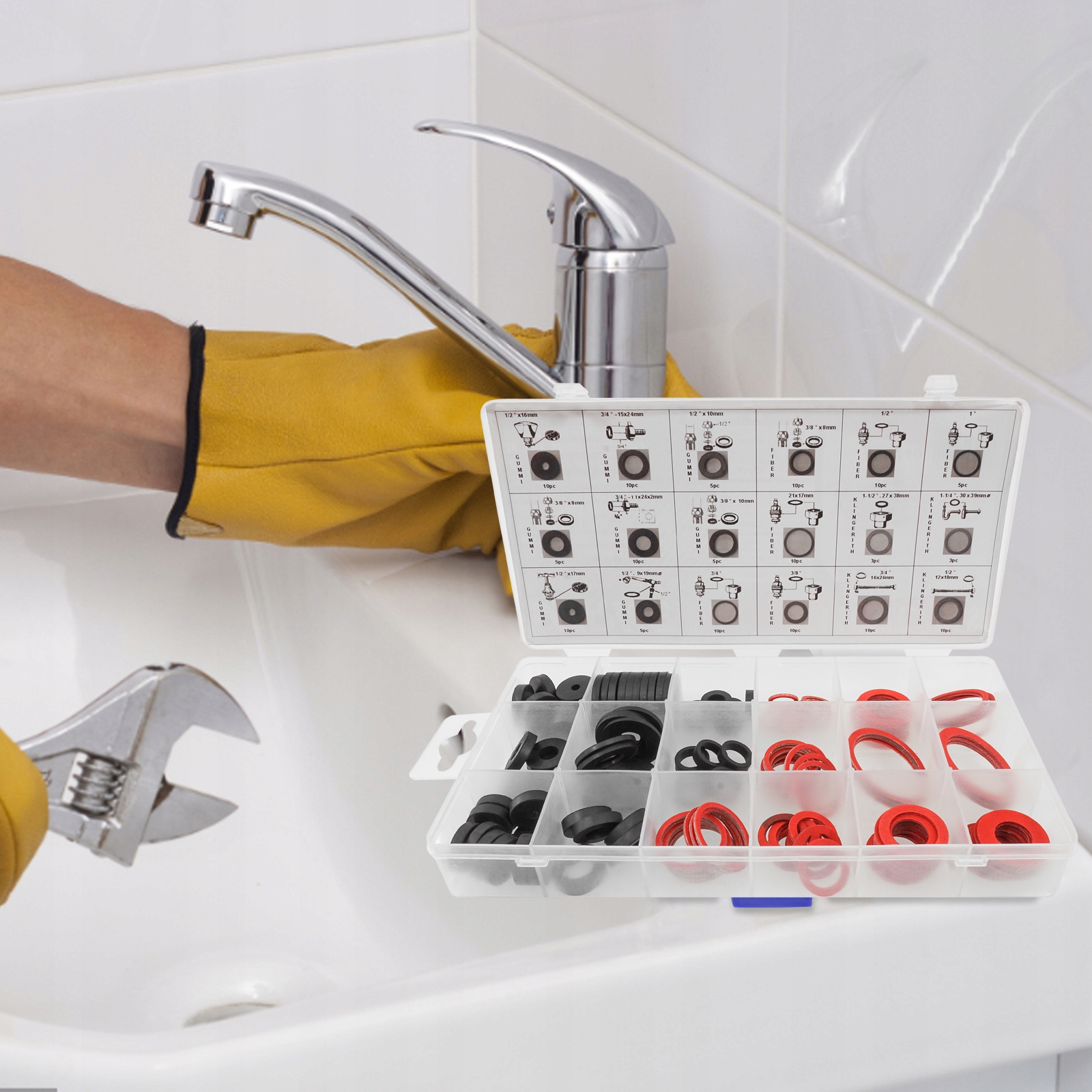 Набір гумових гідравлічних прокладок та вулканізована текстура для встановлення холодної та теплої води. Чорний призначений для встановлення холодної води та червоного для встановлення гарячої води.