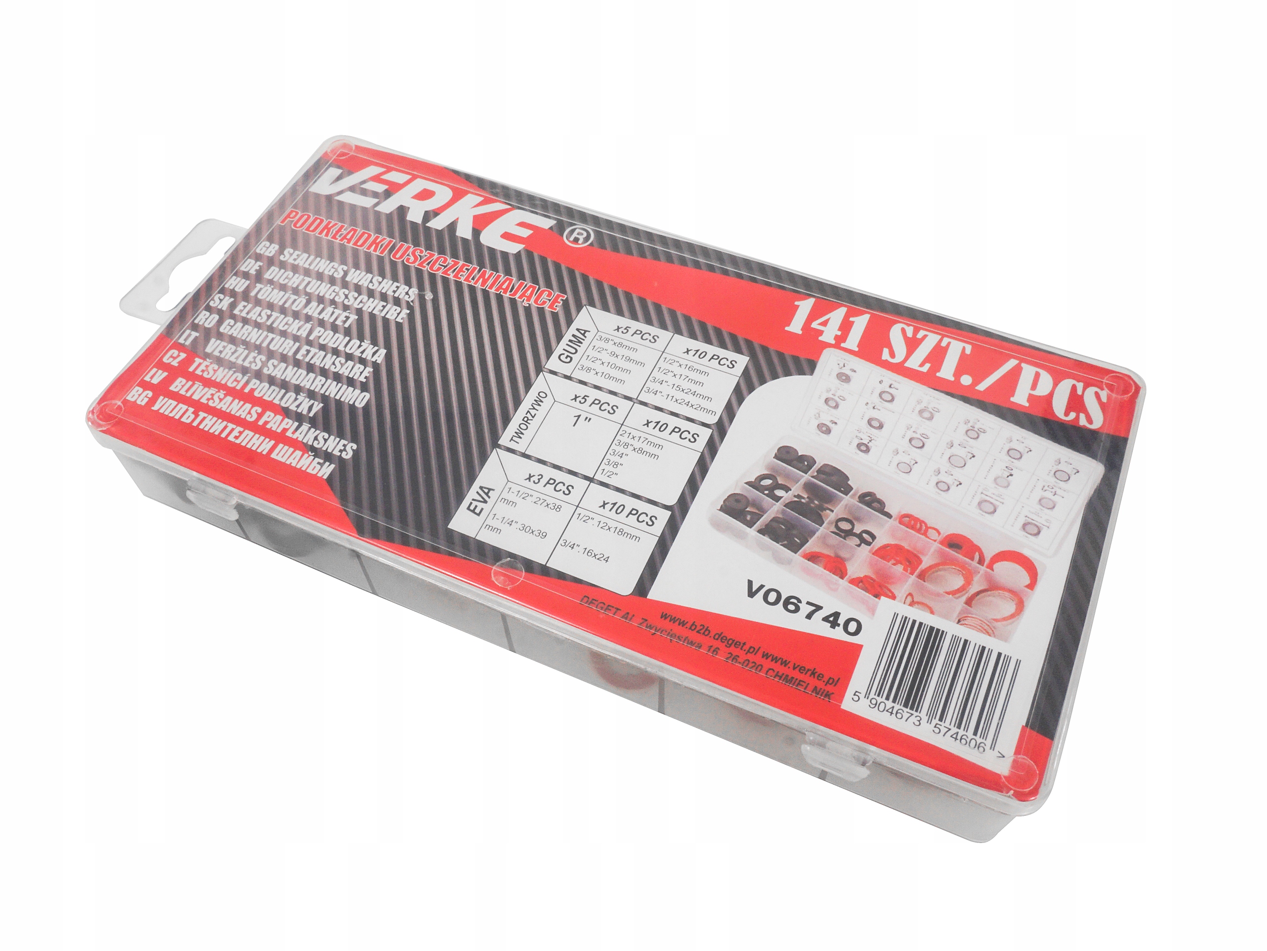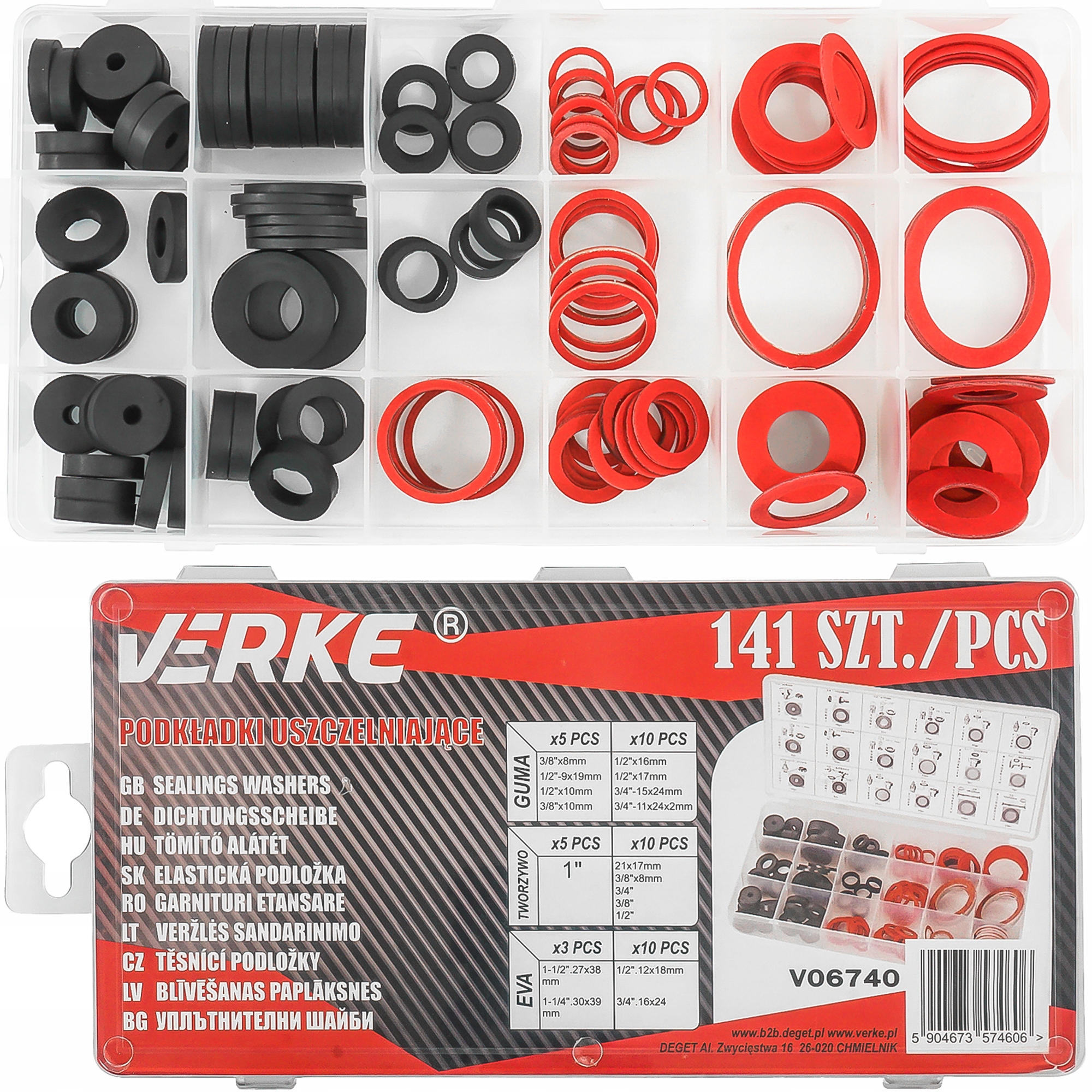 Набір гідравлічних гумових прокладок Verke - це повний набір , що складається з 141 прокладок різних розмірів, розроблених для застосувань у гідравлічних системах. Ці прокладки, виготовлені з високоякісної гуми, забезпечують чудову напругу та захист від витоків у гідравлічних, пневматичних установах та в інших системах, які потребують точної герметизації. Набір ідеально підходить як для професіоналів, так і для домашнього ремонту машин та пристроїв.