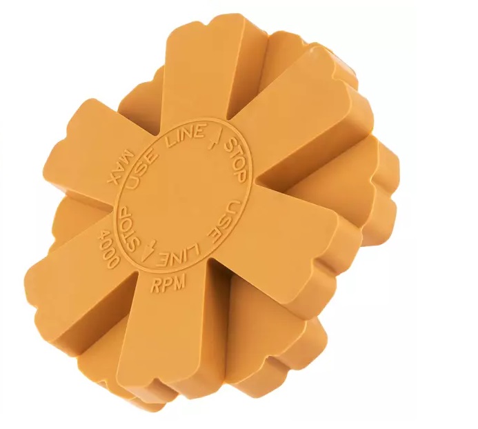 Гумовий диск/диск призначений для видалення з обода залишків скотчу та іншого бруду від приклеєних грузиків. Продукт містить адаптер, який дозволяє швидко приєднати диск до тихохідного пристрою. Диск гарантує швидке та безпечне очищення та підготовку обода до встановлення нової ваги. Особлива структура диска «метелик» робить силу тиску більшою. Завдяки цьому ми швидше видалимо забруднення. Ретельно підібрана суміш високоякісних гум, з яких виготовлений диск, не пошкоджує поверхню, не дряпає і не залишає слідів на очищених поверхнях. Використання диска в процесі очищення обода дозволяє швидко видалити стійкі забруднення. Диск можна використовувати з дрилем CP 887C, тихообертовою шліфувальною машиною CP 873 і акумуляторною дрилем PXA72. Максимальна швидкість обертання диска становить 4000 об/хв. Будь ласка, пам’ятайте, що якщо ми хочемо використовувати диск для болгарки CP873, який має затискний тримач, ми повинні додатково встановити тримач інструменту, наприклад 519 -6672