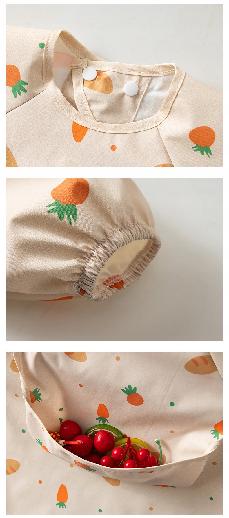 - 100% водонепроникний - захищає від бруду та вологи, ідеально підходить для навчання самостійному харчуванню та творчих занять.