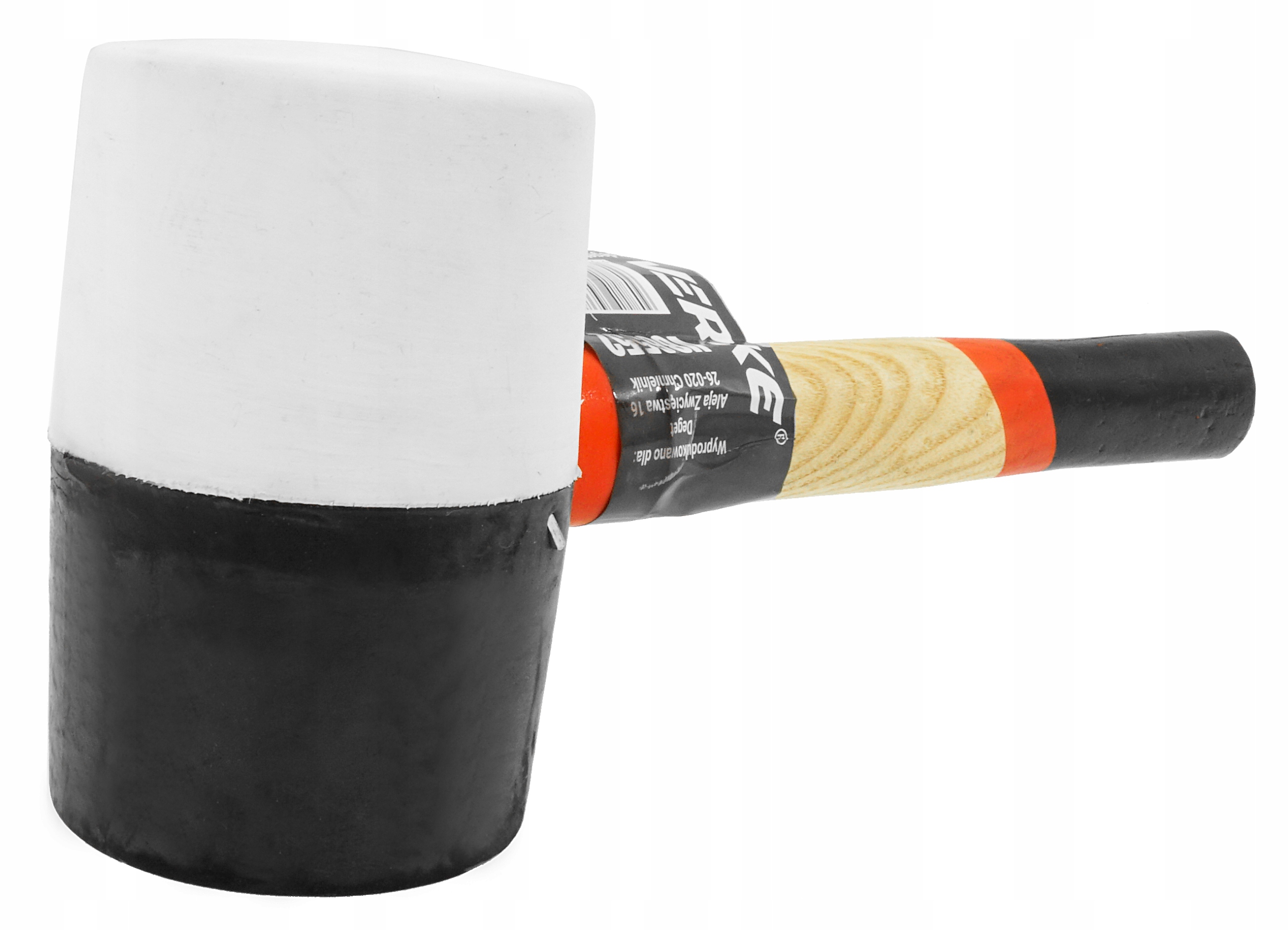 Круглий круглий половина чорно -білої гуми (вживана гума різної твердості). Встановіть на дерев’яну, лаковану ручку. Гумовий молоток для монтажних робіт у багатьох галузях. Особливо корисно при закладанні плитки, складання меблів та інших творів з делікатними матеріалами. Біла гума не залишає ознак на матеріалі. Стійкий до вологи. Вага 910 грам.