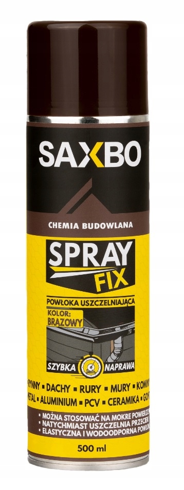 SPRAY FIX — це гнучкий спрей-герметик, який швидко й ефективно усуває протікання та тріщини на більшості будівельних поверхонь*. FIX Spray забезпечує водонепроникне ущільнення, яке запобігає волозі, корозії та іржі. Сучасна, густа формула з відмінною в'язкістю ідеально підходить для заповнення тріщин і тріщин в місцях, схильних до перепадів температури (до +90°C), опадів або УФ-випромінювання. Його можна використовувати навіть на вологих основах. Після затвердіння можна фарбувати більшістю фарб.