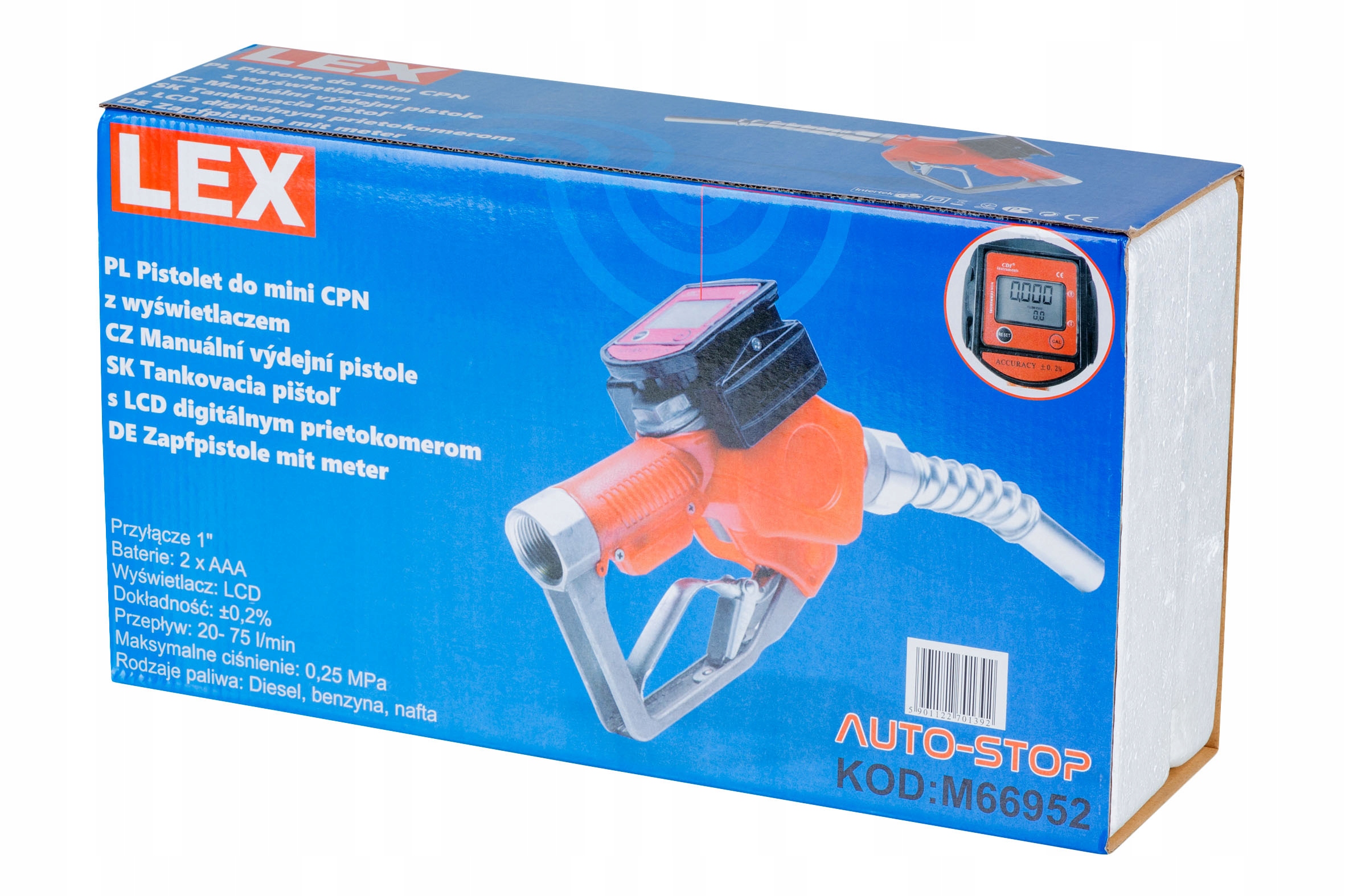 Сучасний і професійний пістолет з паливним насосом (міні CPN), оснащений точним електронним витратоміром і РК-дисплеєм, а також функцією автоматичного зупинення, яка змінює курок після заповнення бака та запобігає переповненню палива.