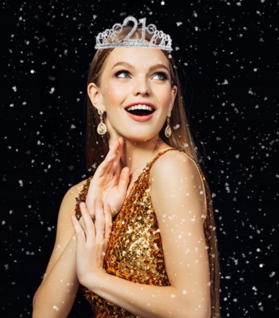 Нова група - Срібна тіара 18 - Корона на день народження + рожева ступінь