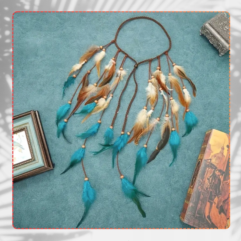 ✅ виготовлений з легкого ремінця та прикрашений красивими синіми штучними пір’ями , гурт чудово підкреслює кожну зачіску, надаючи їй легкість та унікальний характер. Універсальний розмір (окружність 48 см) робить його підходящим більшістю голов, а його делікатний дизайн забезпечує комфорт протягом усього дня - навіть під час найдовших фестивалів та заходів на свіжому повітрі.