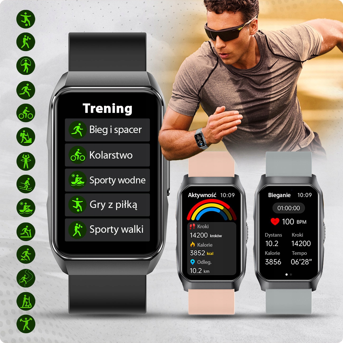 годинник контролює нашу підготовку і вказує кількість спалених калорій, відстань, кількість кроків, частоту серцевих скорочень та час тренувань. Android, iOS та Windows це означає, що його можна прокладати і використовувати з пристроями, що працюють на цих операційних системах.