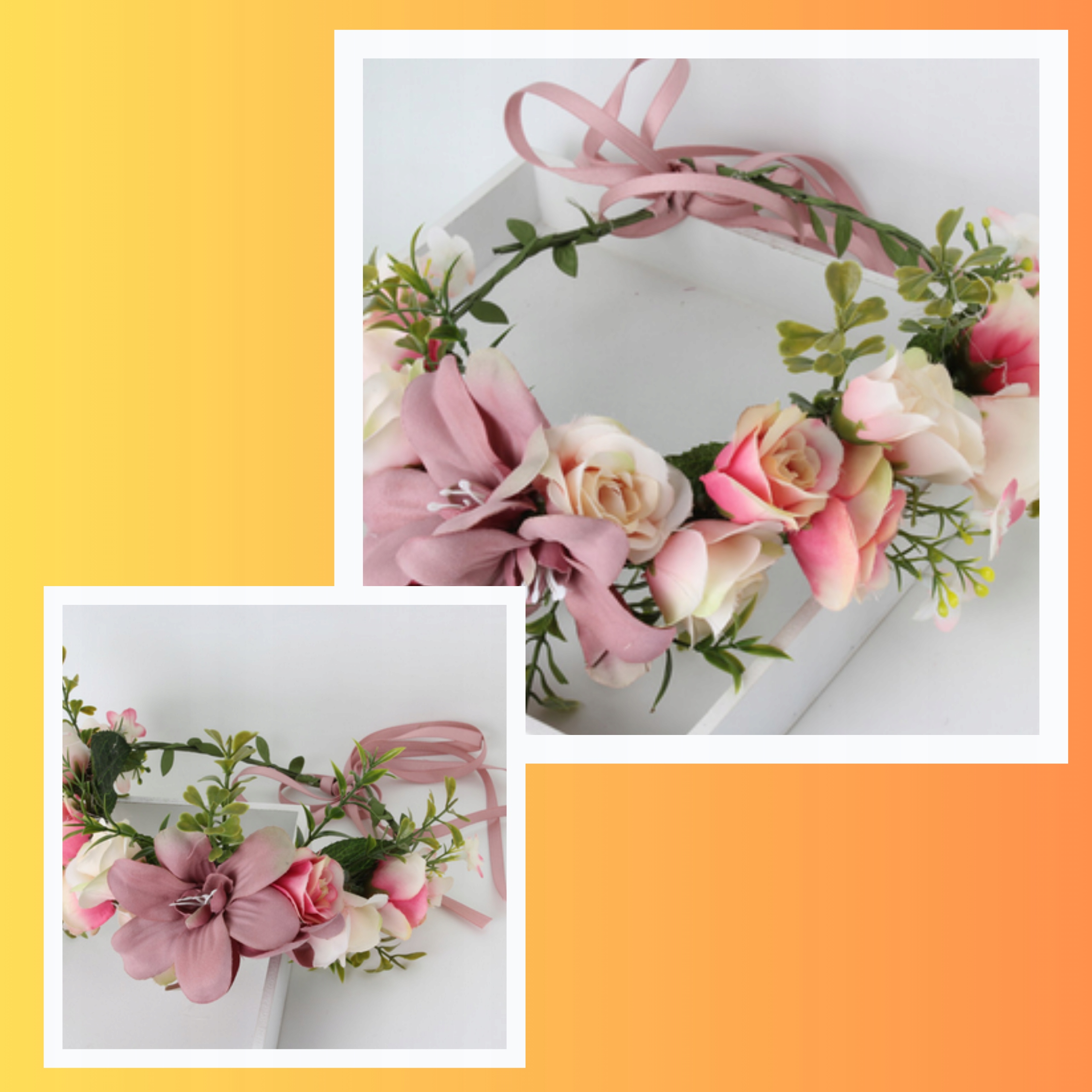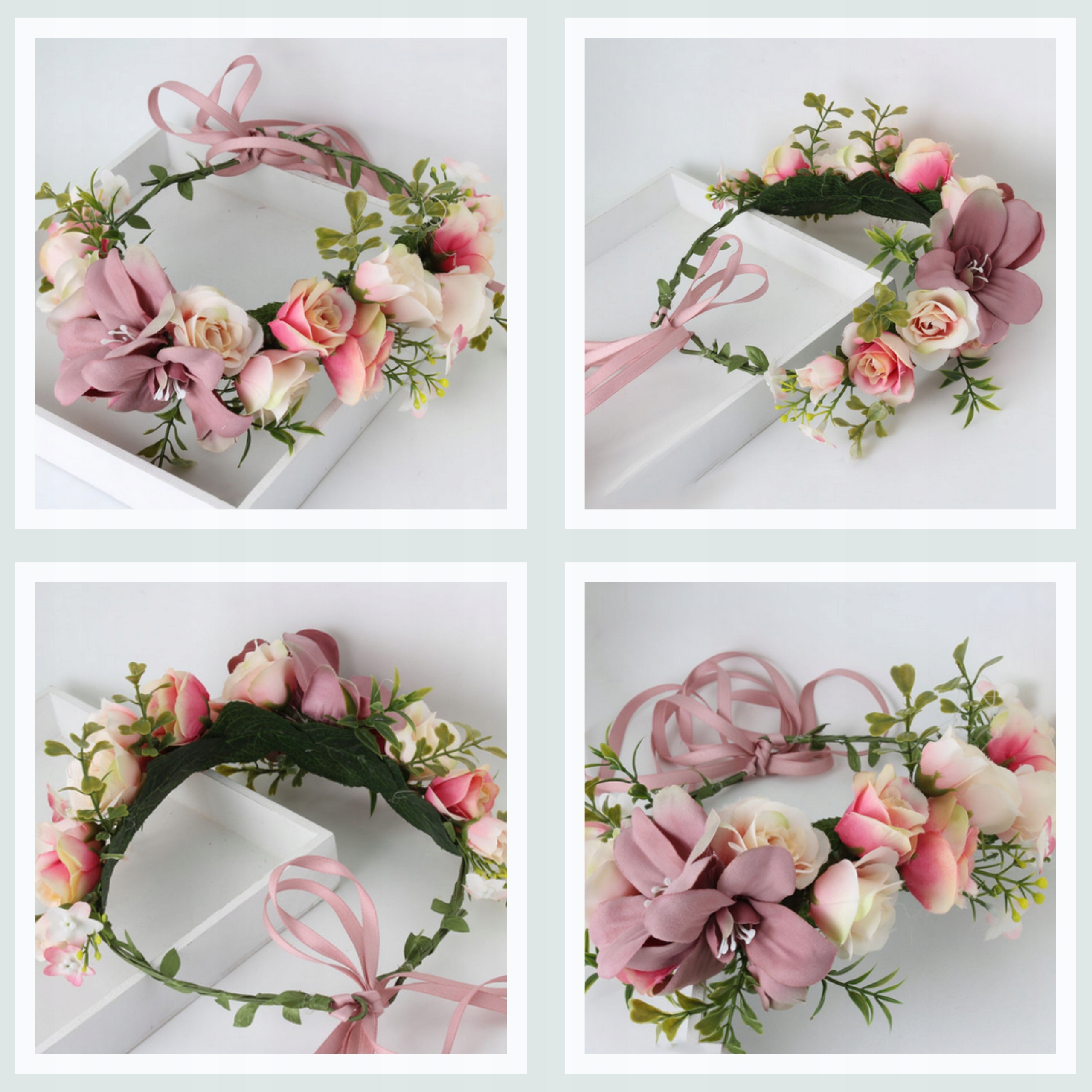 4вінок на голову на голові може бути виготовлений з різних матеріалів, таких як штучні, натуральні, сушені або штучні квіти з тканини або паперу. Існує багато різних конструкцій, кольорів та стилів, що дозволяє адаптувати його до індивідуальних уподобань та смаків.