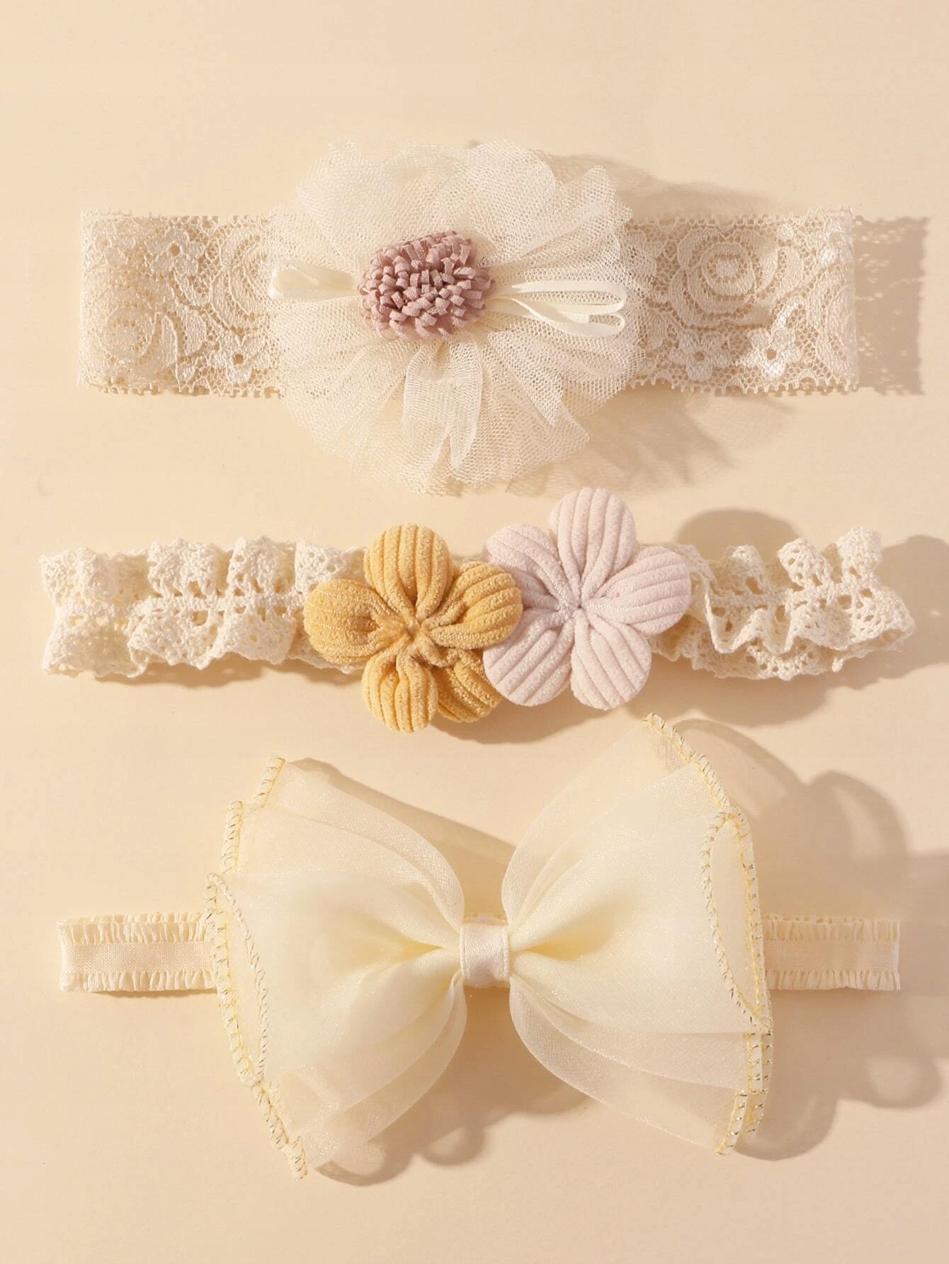Елегантні, стильні пов'язки для дівчат, доступні в одному наборі. Ідеально для додавання оригінальності та елегантності до будь -якого стилю. Цей прекрасний набір складається з трьох марних гуртів, виготовлених з делікатного, гнучкого мережива в тіні бежевого. Кожен гурт був ретельно зроблений з увагою до найменших деталей, забезпечуючи максимальний комфорт.