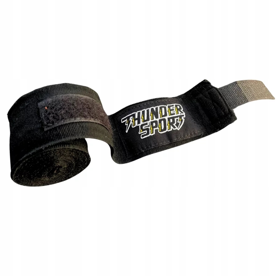 обгортання боксу Thundersport в основному виготовлені з бавовни, але також містять певну кількість еластану. Elastane - це дуже гнучкий і розтягнутий матеріал, завдяки якому пов'язки завжди повертаються до їх оригінальної форми. Вони міцні і стійкі до бруду, особливо до масел тіла та поту. Бокс пов’язки діють як перший захисний шар для рук, жорсткі та стабілізують зап'ястя, мінімізуючи ризик травм та повороту великого пальця. Вони запобігають поглинанню поту в рукавичках. Вони не фарбують руки і не втрачають колір під час миття.