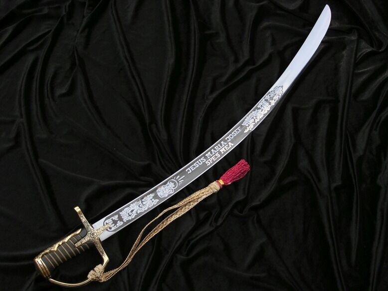 На представленій репліці з одного боку клинка вигравірувано напис «JESUS MARIA JOSEF SPES MEA», а з іншого — «HUSSARIA». Виготовлена з високоякісної толедської сталі.