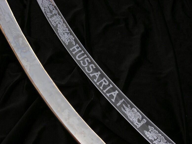 Напис «HUSSARIA» вигравіруваний. на одній стороні леза, а на іншій «ISUS MARIA JOSEF SPES MEA».