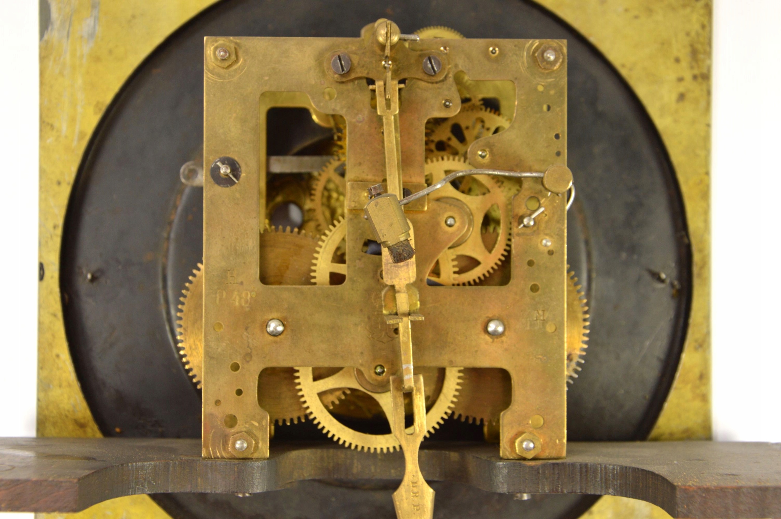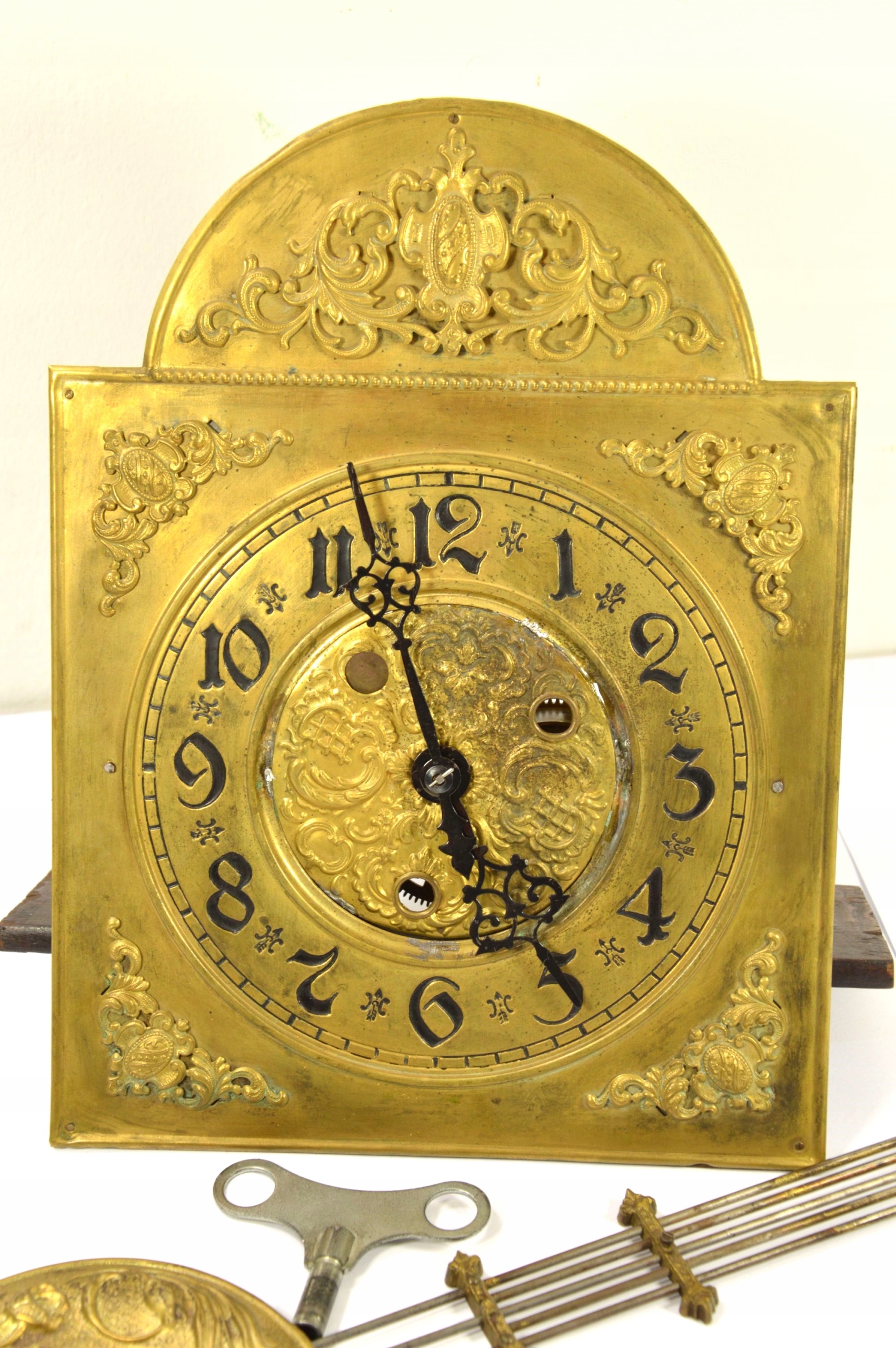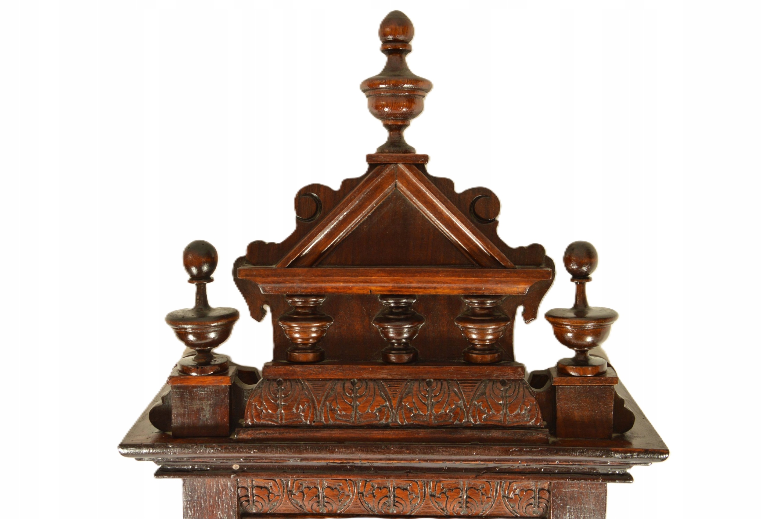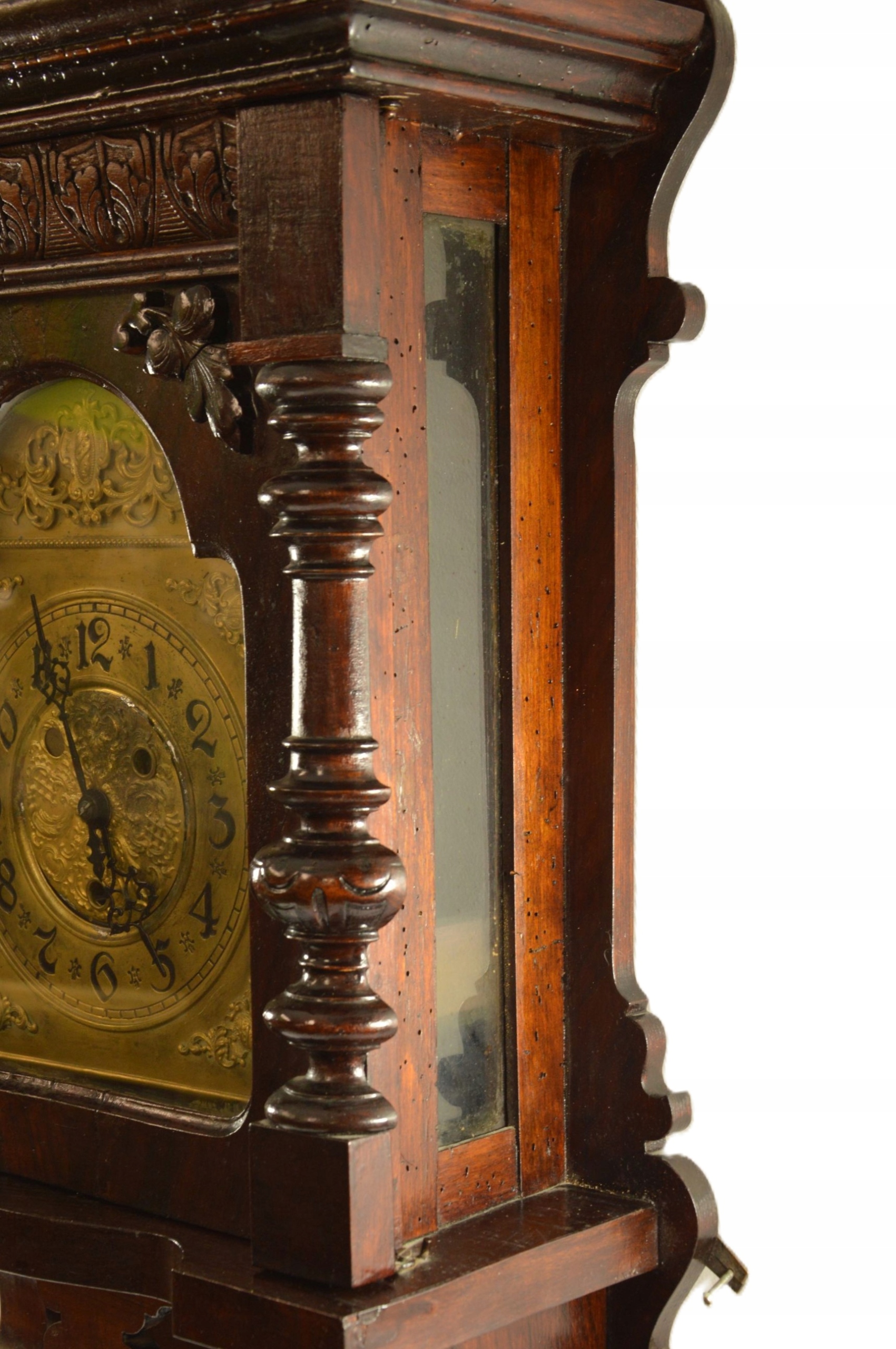 Красивий, старий, великий, висячий годинник Густав Беккер. P48 Механізм - функціональний, у комплекті з маятником та звивистим ключем. Внутрішня частина щита з дірками для звивистих вільних, була вторинною. Повна скриня, що відповідає видимам слідів використання, подряпин, була вторинною лакованою.