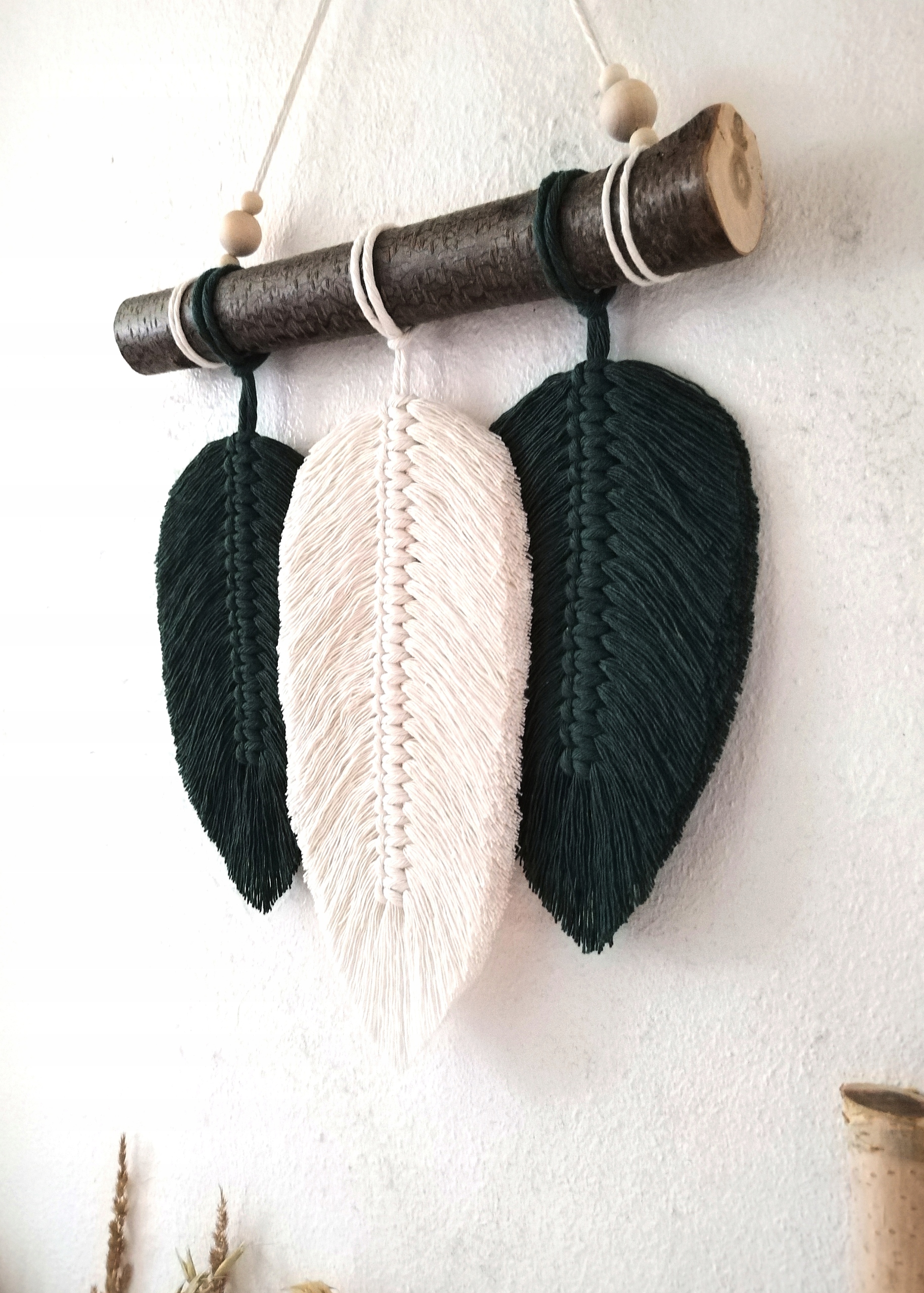 Густе пір'я макраме, декор зеленого листя BOHO