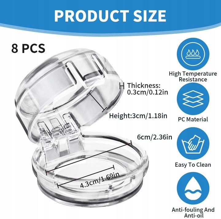 Захист дітей для дітей не тільки безпечний, але й надає вашій кухні естетичний вигляд. Він виготовлений з високотемпературного матеріалу ПК для забезпечення довговічності та цілісності. Кришка духовки має максимальну висоту 4 см, максимальний діаметр 43 мм і максимальна колісна база 60 мм. Комплект включає 8 безпеки, що запобігає ввімкненню випадкового газу. Цей набір ідеально підходить для сімей з дітьми або домашніми тваринами та забезпечує додаткову безпеку на кухні. Номер: *8 (білий) Розміри продукту: 6 х 4,4 см. Діаметр отворів: 4 см вага продукту: 0,02 кг матеріал: пластик