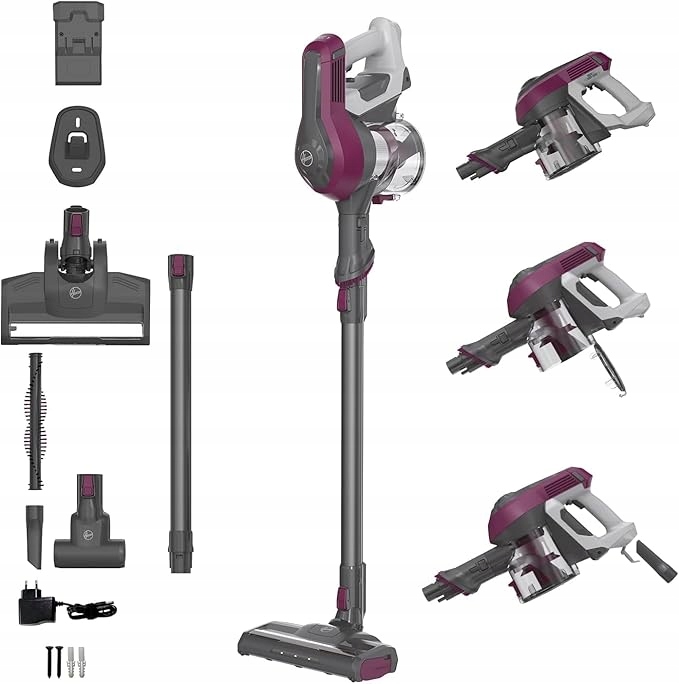 Акумуляторний пилососHoover HF1 — ідеальне рішення для тих, хто шукає ефективність і зручність. Цей бездротовий пилосос елегантного пурпурового кольору був розроблений з урахуванням сучасних потреб прибирання, поєднуючи в собі потужність і легкість керування.