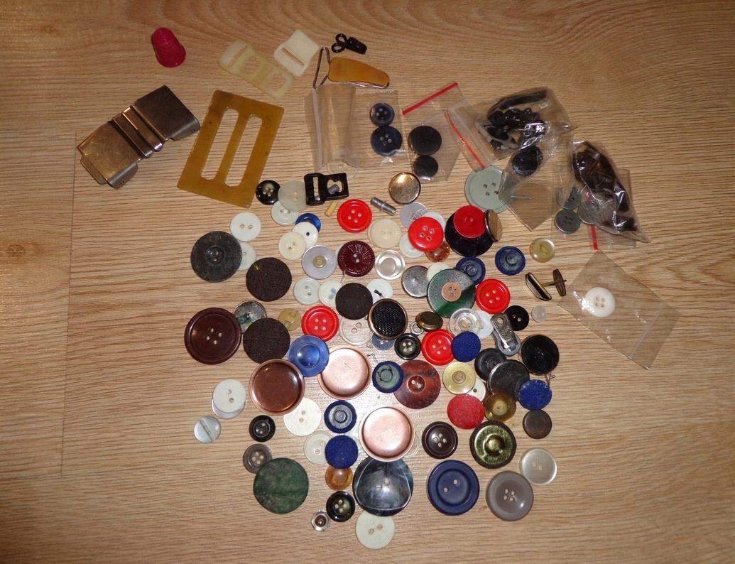 НАБІР кнопок, РІЗНІ, 110 ШТ. ПРИНТИ, ПРЯЖКИ PRL