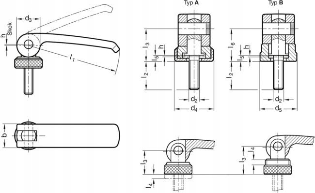 ➡️ Важіль з нержавіючої сталі GN 927.7-44-M4-20-B - з різьбовим штифтом ⬅️
