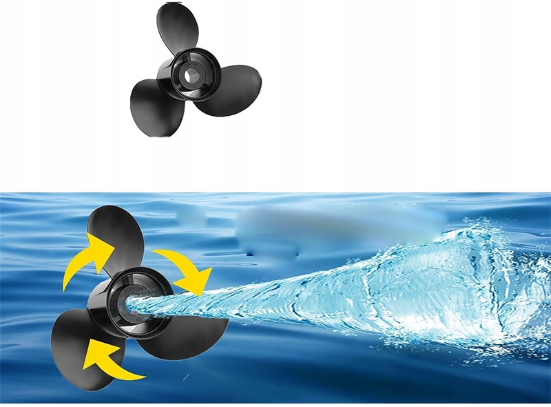 Застосування: Гвинт використовується в рекреаційних човнах, понтонах, риболовних агрегатах та менших моторних човнах, оснащених відповідними підвісними двигунами. Це покращує продуктивність та контроль на човнах, а також забезпечує економічне споживання палива.