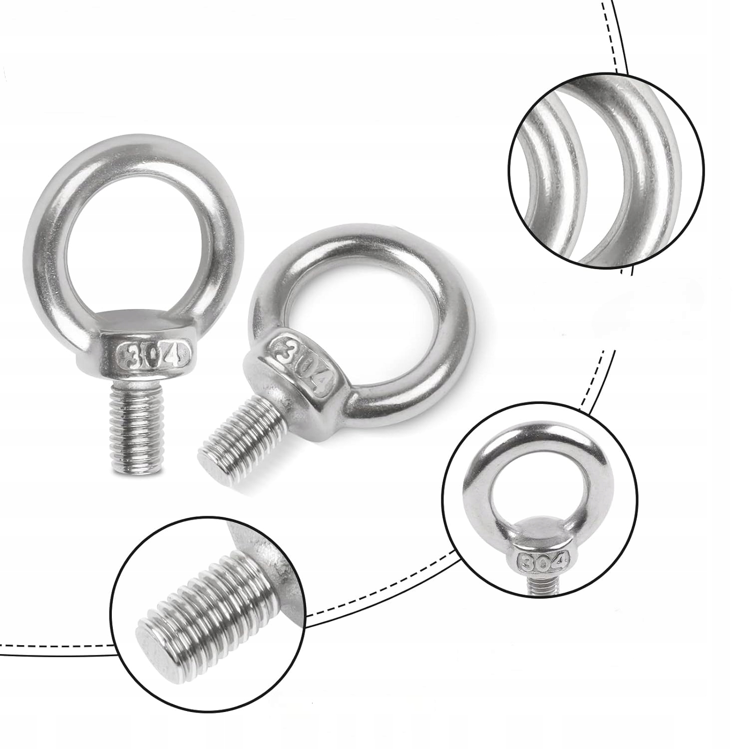 - Широке застосування: рим-болти з нержавіючої сталі підходять для підвішування предметів, опор для рослин, мотузок для прання, тентів, гойдалок та інших з’єднувальних інструментів для з’єднання кабелі та мотузки, також придатні для легких дій підйому та перенесення, підвісні карабіни, скоби, кільцеві гайки, з’єднувачі ланцюга, мотузки тощо.