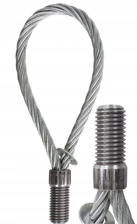 ВИГОТОВЛЕННЯ: канатна петля з різьбленням для поперечного підйому лише до 45°, виготовлена із сталевих канатів, щільно затиснутих у різьбовому з’єднанні відповідно до стандарту ISO/DIN . Випускаються в сталевому виконанні з гільзою з круглою різьбою -тип Rd. Під час кріплення він вставляється в сталевий анкерний гніздо, що стаціонарно вставляється в збірний елемент з такою ж формою та розміром різьби. Доступно у версіях DOR: 0,5-12,5 тонн з круглою різьбою Rd12 - Rd52.
