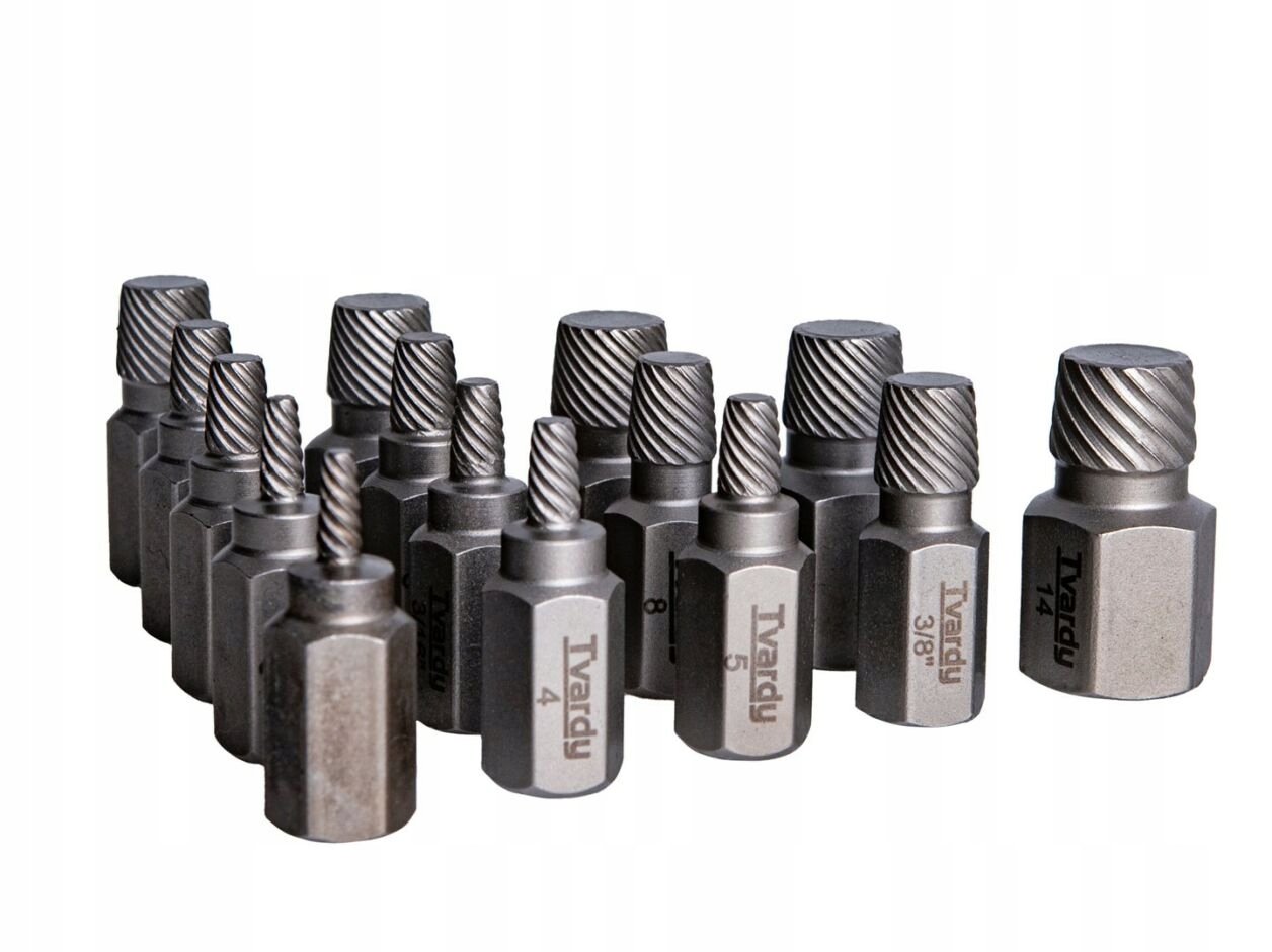 - Універсальність розмірів: Набір включає широкий спектр розмірів, що дозволяє ефективно видаляти зламані гвинти в різних промислових програмах.