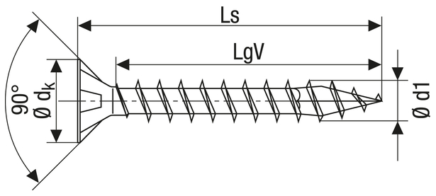 Загальна довжина Ls 60 мм, повна різьба LgV 54 мм, гніздо Z2, кількість в упаковці 500