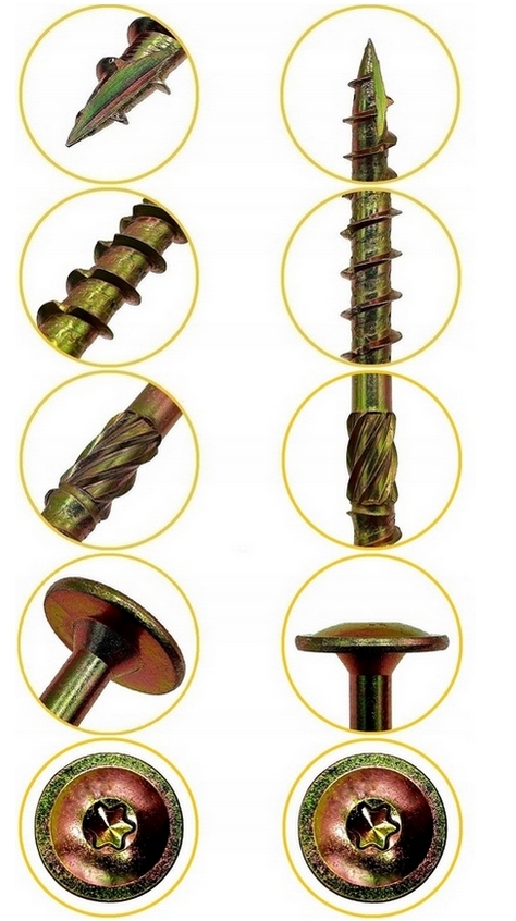 Столярні шурупи завдяки своєму інноваційному дизайну мають покращену загвинчувальну здатність, що значно полегшує роботу при складанні дерев'яних конструкцій. Ці саморізи повністю замінюють будівельні цвяхи і не вимагають свердління. Глибоке гніздо TORX забезпечує кращу передачу зусилля загвинчування та запобігає вискакуванню свердла.