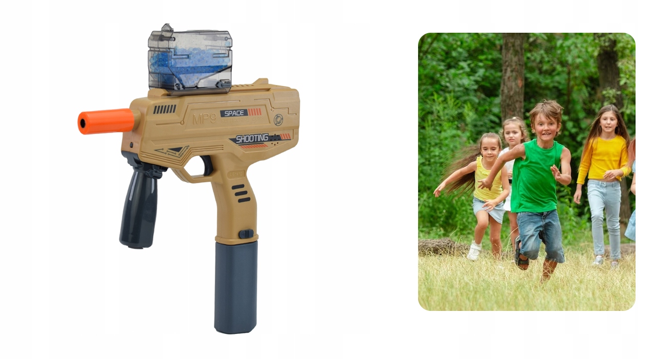 Практичний перемикач, яким оснащена іграшка, робить її використання безпечним. Рушниця призначена для стрільби гелевими кульками діаметром 7-8 мм.