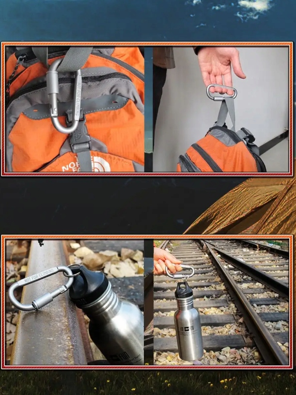Металевий карабін - ідеальний компаньйон для будь-яких пригод, незалежно від того, чи ви любитель виживання, турист чи просто потрібен надійний інструмент для щоденного використання! Наш карабін характеризується компактними розмірами: 4,4 см в ширину і 8,2 см в довжину, що робить його практичним і універсальним. Доступний у кількох модних кольорах: помаранчевому, чорному, сірому та сріблястому, ви можете адаптувати його до свого стилю.