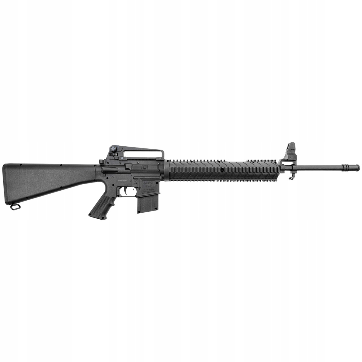 Ekol MC Black, копія легендарної автоматичної гвинтівки M16, яка використовувалася, серед іншого, Американські підрозділи воюють у В'єтнамі. Міцна пружина дозволяє досягти високої початкової швидкості 280 м/с, що робить рушницю придатною для стрільби на середні та великі дистанції. Надійне виготовлення, точність і надійність є відмінними рисами поршневого пневматичного пістолета Ekol MC.