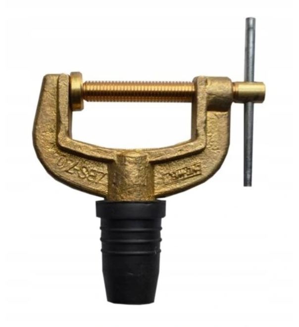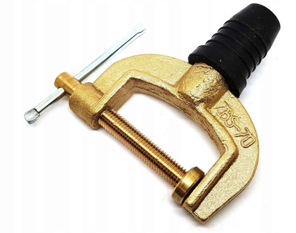 Гвинтовий затискач заземлення ZBS-70 повністю виготовлений з латуні, з латунним литтям і латунним натискним гвинтом. Використання повністю латуні в якості матеріалу для затиску забезпечує найкращі параметри і комфорт роботи. Гумова кришка є гнучкою, що забезпечує тривалий термін служби та можливість легкого підключення до кабелю.