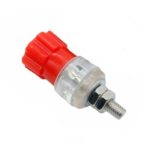Гвинтовий роз'єм із прозорою основою є гніздом для 4-мм лопаткових клем.