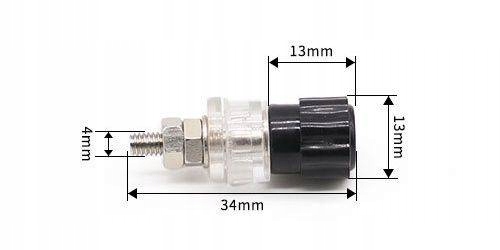 Гвинтовий з’єднувач із прозорою основою є роз’ємом для 4-міліметрових лопаткових клем. Гвинтовий з’єднувач 4 мм, чорний.