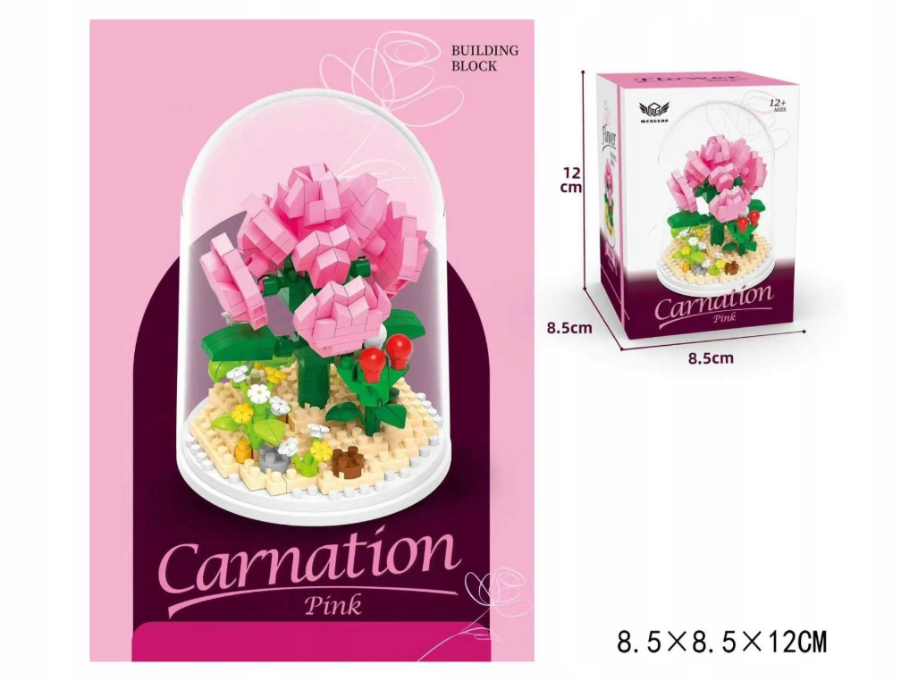 реалістичний зовнішній вигляд - рожева гвоздика з прекрасним розгалуженням, оточеним зеленими листям, білими та жовтими квітами та червоною чорницею - всі мікрокарики! DIY Design - Незалежне складання забезпечує задоволення, задоволення та навчання терпіння.