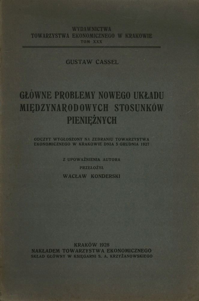 GŁÓWNE PROBLEMY NOWEGO UKŁADU STOSUNKÓW PIENIĘŻNYCH - GUSTAW CASSEL - 1928