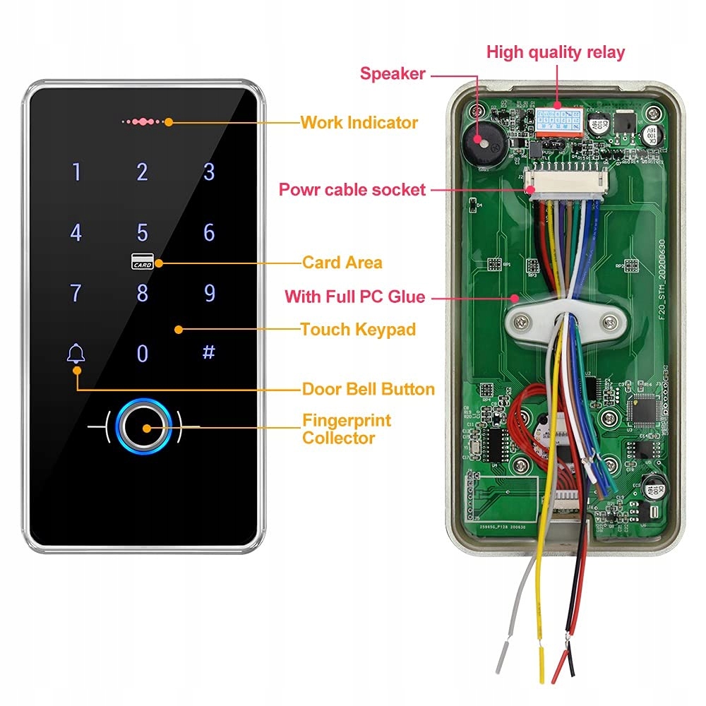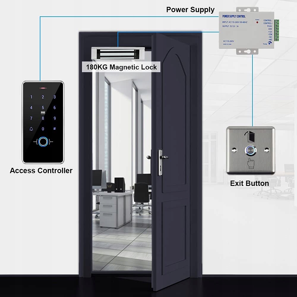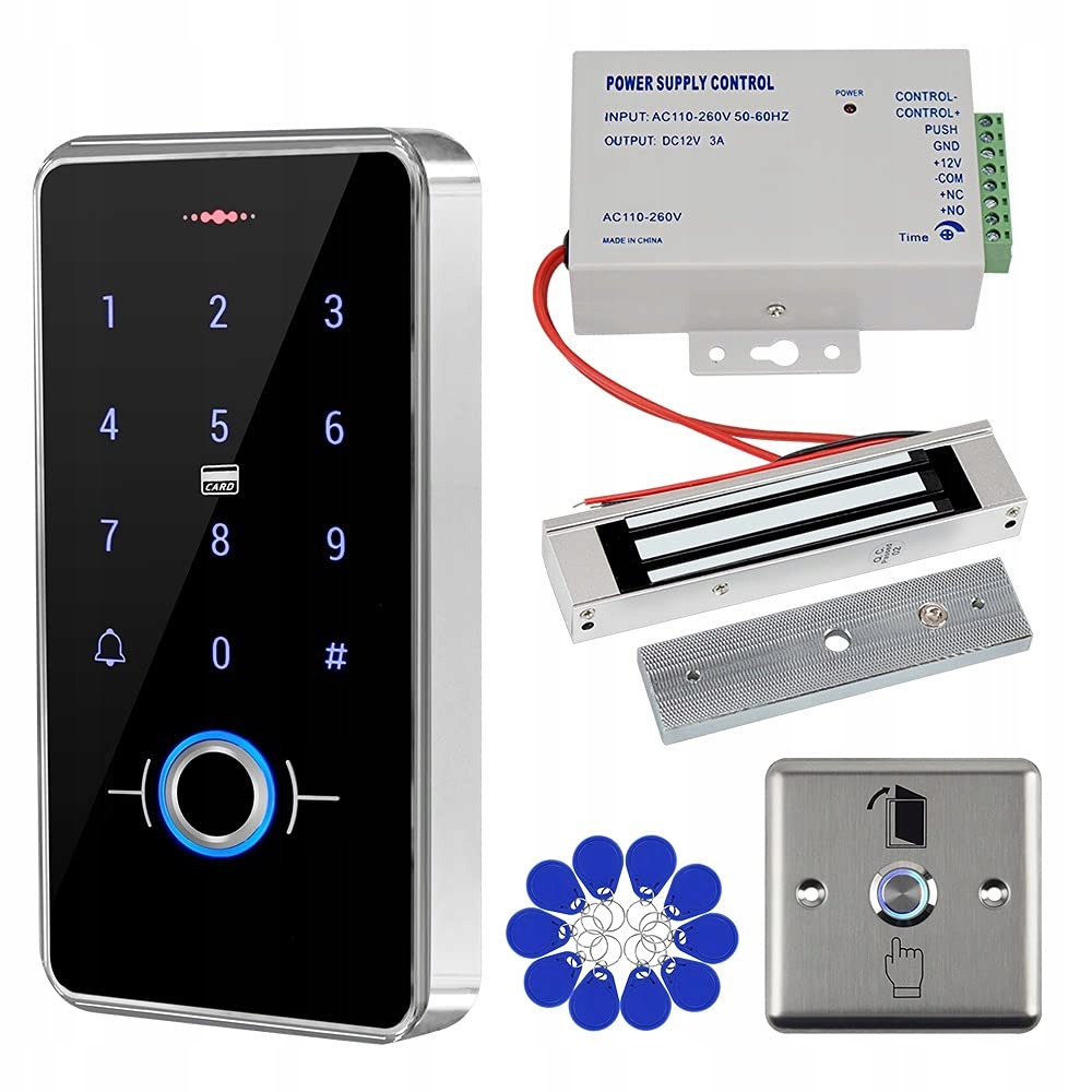 - Ім'я елемента : gxy rfid, система управління доступом до дверей IP68, водонепроникна клавіатура з відбитків пальців, блокування магніт 180 кг, 12 В 3 Блок живлення, металевий вимикач дверей, 10 IC 13,56 МГц, ключове кільце ключ