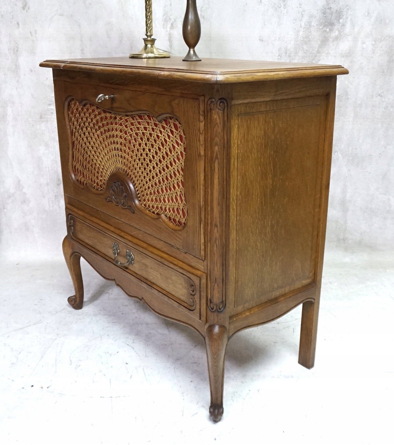 скриня в стилі Чіппендейл має нахил дверей- всередині бару